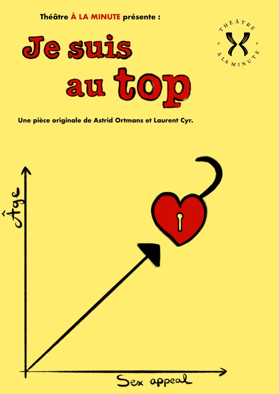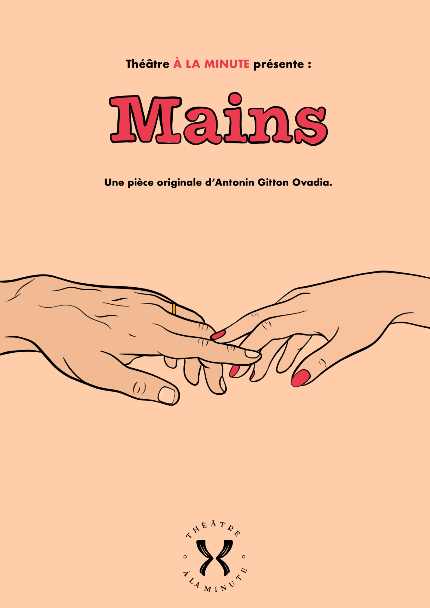 À LA MINUTE propose quatre pièces différentes de 15 minutes chacune au cours d’une même soirée. Ces pièces sont réunies autour d’un thème central (l’amour, l’argent, la famille, le corps…), mais chacune présente une histoire unique et indépendante.